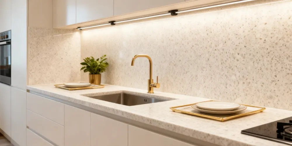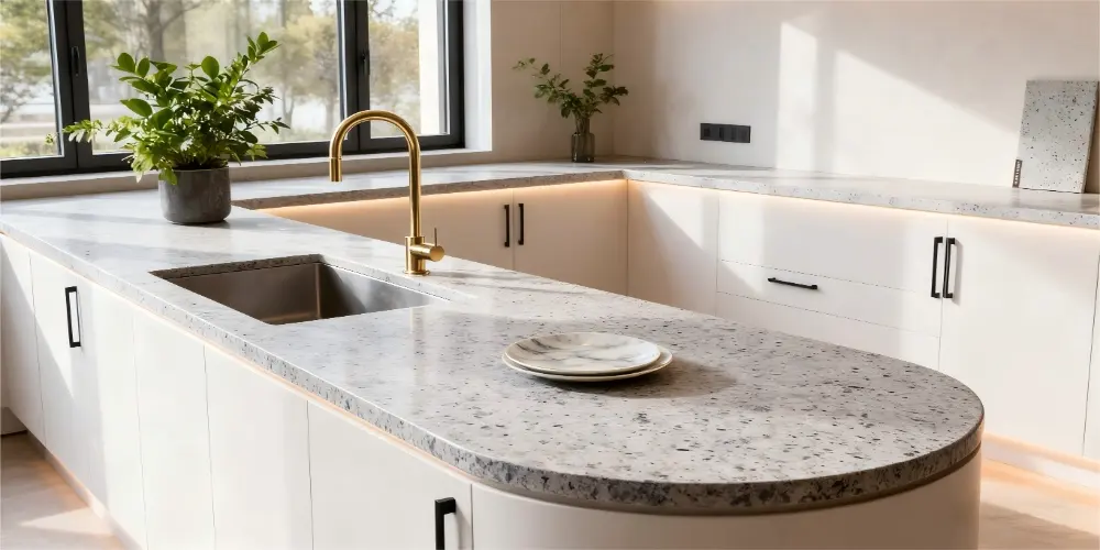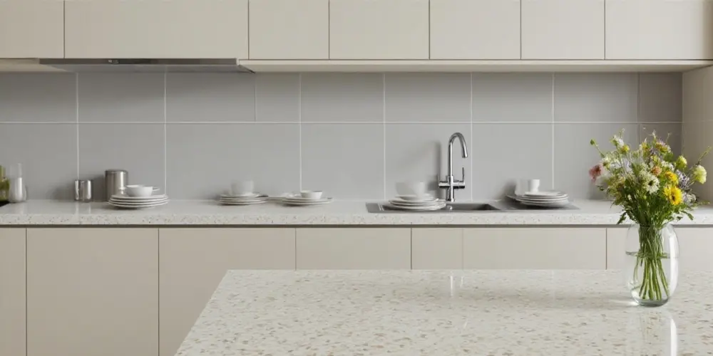 Beige Terrazzo Quartz Slabs for Kitchen Spaces