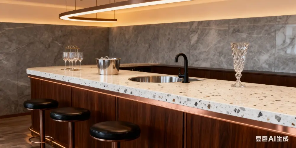 Our D9812 quartz slab is built to meet the most demanding commercial challenges. The product is composed of large, high-hardness quartz particles and recycled aggregates, including unique amber-colored chips that give floors and walls a rich visual texture and a warm commercial ambiance. Its dynamic appearance is excellent at concealing dirt and scuffs from daily use, making it perfectly suited for retail stores, schools, restaurants, and transportation hubs.