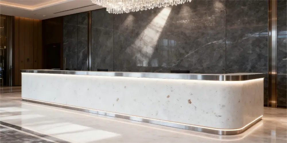 We use high-purity quartz crystals and resins, produced on advanced machinery. We have a strict ISO9001 quality management system. Every batch is tested for compressive strength, abrasion resistance, and hardness. We guarantee our products are non-radioactive and environmentally safe, and we provide after-sale warranty for quality.