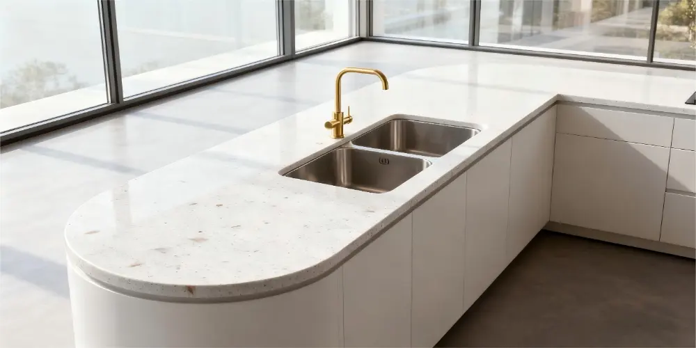 For contractors and developers, D9818 offers a differentiating element that can make their projects stand out from the competition, all while retaining the high-performance advantages of engineered stone: scratch resistance, stain proofing, and ease of maintenance. Through advanced production controls, we ensure that the distribution density of the accent particles remains consistent across different batches, allowing you to confidently specify this material with its unique “signature” for large-scale projects without worrying about inconsistencies.