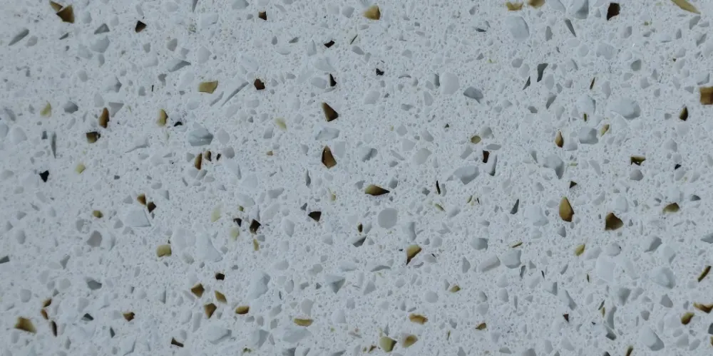 J9836 is a white terrazzo quartz engineered for modern, high-traffic commercial spaces. Its bright base is embedded with large, irregular crystal and recycled aggregates, creating a bold and fashionable visual statement. This product combines cutting-edge design aesthetics with top-tier durability, making it the ideal choice for designers and developers looking to infuse projects with vibrancy while ensuring an exceptionally long service life.