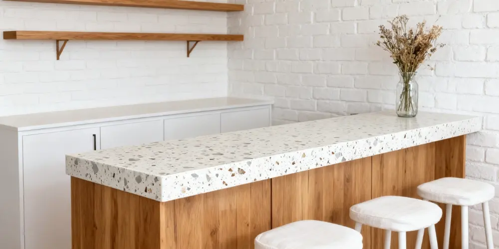 For contractors and project managers, J-9836 is a high-performance material that ensures long-term value and client satisfaction. Its dense, non-porous surface is completely impervious to dirt and common spills, making cleaning and maintenance extremely simple. Compared to traditional terrazzo, our engineered stone product offers superior consistency in particle distribution and color, ensuring supply stability and a uniform final appearance for large-scale projects. Our reliable supply chain and high-quality product are your powerful guarantee for completing demanding commercial projects on time and within budget.