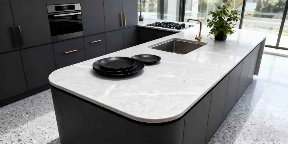 S1038 is a grey quartz with a modern and serene character. Its neutral, light grey base is graced with extremely subtle, cloud-like veins, bringing an understated and sophisticated texture to any space. It is an ideal specification for commercial or residential projects that require a uniform, high-end, and contemporary feel, ensuring both color consistency and superior performance.