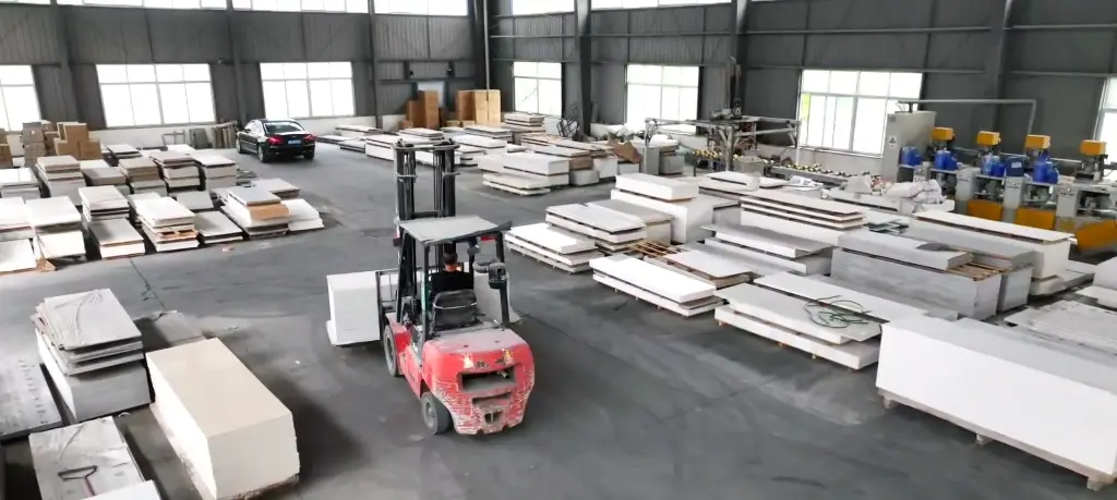 We use high-purity quartz crystals and resins, produced on advanced machinery. We have a strict ISO9001 quality management system. Every batch is tested for compressive strength, abrasion resistance, and hardness. We guarantee our products are non-radioactive and environmentally safe, and we provide after-sale warranty for quality.